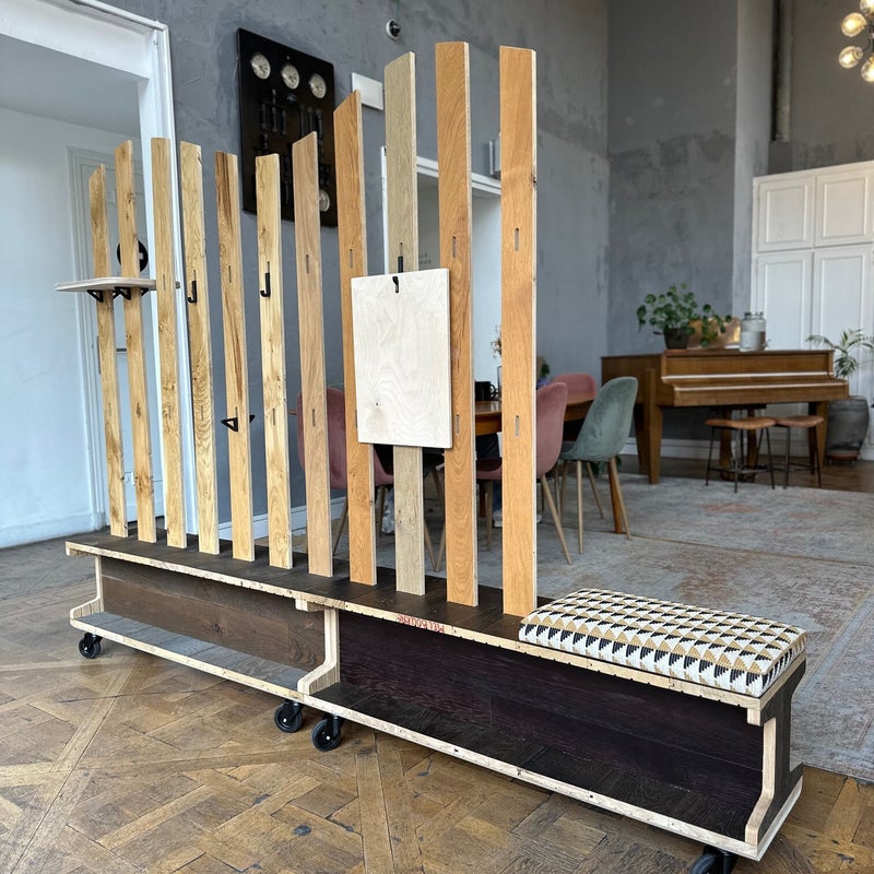 Un vrai gisement qui peut devenir une ressource circulaire et se métamorphoser en mille objets grâce aux imaginations les plus fécondes et aux gestes les plus assurés : tables, dessous-de-plat, porte-téléphone, étagères… Verni, patiné et durci par le temps, le parquet est un matériau de qualité et un parfait module de construction !